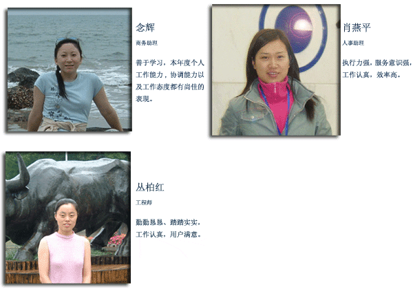 2005年(nián)度,是(shì)™™金(jīn)科(kē)集團整合資源、經營創新、捷報(bào)頻λδ₽∞(pín)傳的(de)一(yī)年(nián)。在這(zhè)一(yī)年(nián)裡(↑€π¶lǐ),許多(duō)員(yuán)工(gōng)默默無聞地(dì)在本職工(g¥ ōng)作(zuò)中發揮著(zhe)閃亮(liàng↓")的(de)光(guāng)彩:他(tā)們愛(ài)崗敬業(yè),工(gōng)作(zuò≠₽≥β)盡責;他(tā)們勤奮務實,開(kāi)拓進取;他(tā)們在平凡的(de)崗位以不'•'±(bù)平凡的(de)精神打動著(zhe)身(shēn)邊的(de)每一(y♠↓® ī)位同仁。為(wèi)弘揚這(zhè)種精神,表彰先進,挖掘員(yε™φ£uán)工(gōng)優秀事(shì)迹,集團人(rén)力資源部開(kāi)展了(le)2$δ005年(nián)度優秀員(yuán)工(gōng)評選活動。經各±≠業(yè)務單位推薦,全體(tǐ)員(yuán)工(g★€ōng)投票(piào),集團經營班子(zǐ)評議(yì),現(xiàn)将評選結果公布如(r© ∑§ú)下(xià): 1)最佳管理(lǐ)獎 賈子(zǐ)華 施新躍&∞ ✔nbsp; 林(lín)懷閩 劉正龍