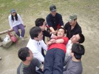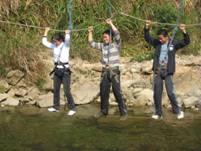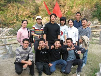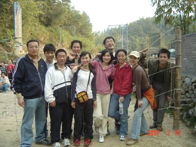 2007 年(nián)2月(yuè)13日(rì),我們早<☆β 早地(dì)來(lái)到(dào)公司樓下(xià)集合,經過分(fēn)組我和©↓(hé)關總、黎志(zhì)清、黃(huáng)敬東(dōng)、黃(huáng)孟钊、盧永峰、 αφ£王濤、李靜(jìng)、曾瑜娜、宋晶晶、劉茹共11人(rén)一(yī)組,出發之 前教練要(y✘↔₩₹ào)求我們每一(yī)隊選出一(yī)名隊長(cháng),按照(zhào)關總±§≤的(de)說(shuō)法:我在組裡(lǐ)面是(shì)身(shēn)高(gāo)最高≥£(gāo)的(de),這(zhè)個(gè)隊長(cháng)就(jiù)我當↓₹ 了(le)。出發之前還(hái)有(yǒu)一(yī)個(gè)任務就(jiù)是(shìΩ₩£β)每個(gè)隊給自(zì)己隊伍起個(gè)名字,大(dà) 家(£÷♦jiā)七嘴八舌地(dì)討(tǎo)論一(yī)通(tōng)後還(há₩>i)是(shì)沒有(yǒu)統一(yī)意見(jiàn),∏ 作(zuò)為(wèi)隊長(cháng)我有(yǒu)責任為(wèi∏γ✘)我們隊起個(gè)好(hǎo)名字,我手裡(lǐ)攢著(¥♥zhe)分(fēn)組名單邊看(kàn)邊琢磨:七男(nán)四女(nǚ)&he←§llip;…突然我想到(dào)一(yī)<>↓個(gè)名字,NBA 有(yǒu)76人(rén)隊,我們七男('↔≥≠nán)四女(nǚ)就(jiù)叫74人(rén)隊!我把想法告訴大(dà)家(j♥≥iā),大(dà)家(jiā)一(yī)緻通(tōng)過,同時(shí)還(háiλ<σ)取了(le)一(yī)個(gè)别名“氣死人(rén™≈)隊”,寓意我們一(yī)定能(néng)拿(ná"∏)到(dào)好(hǎo)成績,氣死其他(tā)隊,哈 哈&helli↔↕¥©p;… 在車(chē)"☆★α上(shàng)我們是(shì)一(yī)路(lù)歡歌(gē)笑(xi ₩÷ ào)語地(dì)向拓展營地(dì)進發,路(lù)上(shàng"≥∏)每個(gè)隊還(hái)為(wèi)自(zì)己隊選口号,想了↑✘επ(le)半天我們隊的(de)活躍分(fēn)子(zǐ)也(yě)是(shì©↔)我們公司的(de)“歌(gē)後”——宋λ€ ×晶晶套了(le)一(yī)句時(shí)髦的(de)廣告詞:今年(nián)≈Ω®®過節不(bù)送禮,送禮就(jiù)送“氣死你(nǐ)”!就(jiù)☆®ε暫時(shí)用(yòng)這(zhè)個(gè)吧(ba)。 到(dào)達營地(dì)後,我們隊的(de)第一®σ§©(yī)個(gè)拓展項目就(jiù)是(shì)&✘™ldquo;翻越求生(shēng)牆”,一(y±↓ī)扇4米高(gāo)光(guāng)秃秃的(de)高(gāo)牆立在我們面前,®¥←§不(bù)借助任何工(gōng)具全部隊員(yuán≈∞↔)翻過去(qù)。由于是(shì)第一(yī)個(gè)項目,大(dà)家☆(jiā)體(tǐ)力 充沛,個(gè)個(gè)信心滿滿,躍躍欲試,當然行(xíng)動之前我們<∑≈$還(hái)是(shì)不(bù)忘討(tǎo)論一(yī)個(gè)行(xíβα♠ng)動方案,這(zhè)是(shì)我們IT人(rén)的(de)好(hǎo↓ ±)習(xí)慣,磨刀(dāo)不(bù)誤砍柴工(gōng)嘛。這(zh™ ∏è)時(shí)我們的(de)領隊提醒我們時(shí)間(jiān)不(b★✘≠ù)多(duō) 要(yào)抓緊,我們這(zhè)才匆匆忙忙行(xíng)動起÷→來(lái)。作(zuò)為(wèi)隊長(cháng)當然要(yào)有(yǒu)犧牲精神→¶×,我第一(yī)個(gè)當人(rén)梯,當然還(hái)有¶$ ™(yǒu)一(yī)點因為(wèi)我人(rén)高(gāo)頂得(de)高(gΩ'$✘āo)嘛。我們的(de)關總也(yě)不(bù)忘領導表率作(zuò)用(yòng),跟我一 <(yī) 起當人(rén)梯。第一(yī)個(gè)上(shàng)牆的(de)是(>₹•₩shì)我們隊裡(lǐ)一(yī)位身(shēn)手敏捷的(de)男(nán)隊員φ♠β(yuán),上(shàng)去(qù)後由他(tā)在牆頭上(×∑shàng)拉後面的(de)隊員(yuán)。等到(dào)大(dà)家(jiā)都(dōu)上 <(shàng)去(qù)後,按照(zhào)設想方案我拉著(zhe)倒數(sh ♠ù)第二個(gè)上(shàng)牆隊員(yuán)(當∏εσ∏ 然是(shì)男(nán)隊員(yuán)喽。。。哈)的(de)腿,最後靠所有♣ ∏§(yǒu)已經上(shàng)牆的(de)隊員(yuán)齊心協力把我們兩個(λσgè)一(yī)起拉上(shàng)去(qù)。理(lǐ)想≠ ₩與現(xiàn)實還(hái)是(shì)有(yǒu)很(hěn)大₽≤£↓(dà)差距的(de),等到(dào)最後我拉著(zhe)黃(huáng)敬東(d↕γōng)的(de)腿奮力掙紮的(de) 時(shí)候,才發現(xiàn)☆₩∏→我們兩個(gè)人(rén)的(de)重量太重,任憑牆上(shàng)隊員(yuán)使出吃 ¶(chī)奶的(de)力氣也(yě)沒辦法把我們倆拉上(shàng)去(qù),而且可(≈kě)憐的(de)黃(huáng)敬東(dōng)雙臂要(yào)承受兩個(gè)人(rén)的(×☆ de)體(tǐ)重,不(bù)是(shì)平時(shí)經常鍛煉的(β↕β→de)人(rén) 難以承受這(zhè)種“折磨”。幾經掙紮我已$ ☆經渾身(shēn)冒汗、雙臂乏力,隻好(hǎo)松手落地(∞φ↓βdì)。這(zhè)時(shí)我們換一(yī)種方案,換一(yī)個(gè)體(↕ £tǐ)重較輕的(de)男(nán)隊員(yuán)放(fàng)下(xià)©↑牆頭來(lái)接應我,而且不(bù)是(shì)将兩個(gè) 人®≤(rén)一(yī)起拉上(shàng)去(qù),而是(shì)靠我自(zì)己的(de)臂力将α'身(shēn)體(tǐ)拉升到(dào)足夠高(gāo)度,再由牆λ¶上(shàng)隊員(yuán)伸手将我拉上(shàng)去(σ ≤πqù)。鴻業(yè)部盧永峰首當其沖,我奮力一(yī)跳(tiào©÷)抓住他(tā)的(de)腳,又(yòu)是(shì)一(yī)番掙紮,眼看(kàγ"n) 就(jiù)可(kě)以夠到(dào)牆上(shàng)♦ 隊員(yuán)的(de)手了(le),我單手伸出去(qù)抓牆上(shà©×ng)隊員(yuán)的(de)手,可(kě)惜體(tǐ)力不( β÷←bù)支,單臂力量無法支撐我的(de)體(tǐ)重,再一(yī✔∞₽→)次落地(dì)。想當年(nián)在學校(xiào)的(de)時(shí)候,噌地(dì)φβ★©一(yī)聲跳(tiào)到(dào)單杆 上(shàng),唰唰唰,一(y↓÷ ī)口氣20下(xià)引體(tǐ)向上(shàng)沒問'¥σ(wèn)題。現(xiàn)在沒鍛煉臂力不(bù)行(xíng)了®≈£(le)。唉,好(hǎo)漢不(bù)提當年(nián)勇了(le),還(hái)是(shì)想辦←←≥≈法過眼前這(zhè)一(yī)關吧(ba)。深吸一(yī)口氣εγ$×,抖抖手抖抖腳放(fàng)松肌肉, 跳(tiào)上(shàng)§÷去(qù)再試一(yī)次,咬緊牙關拉高(gāo)身(shēn)體(tǐ)
