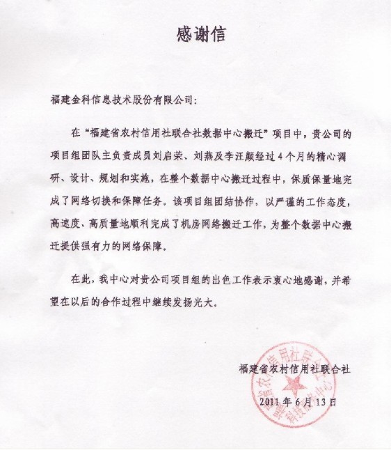 日(rì)前我司負責實施的(de)農(☆♠nóng)信數(shù)據中心搬遷項目已順利完成,參與農(nóng)信項目的(de)工(gō♥↔€ng)程師(shī)團隊以嚴謹的(de)工(gōng)作(zuò)态度、過硬♣≤↓的(de)技(jì)術(shù)能(néng)力獲得(de)客戶高(gāo)度贊揚。✘≥§