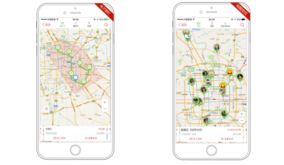 地(dì)圖查看(kàn)人(rén)員(yuán)每天的(de)外(wài)出工(gōng)䮥作(zuò),所在位置,更清晰了(le)解人(rén)員(yuán)工(gōng)作(zuò)$≥♣≤情況,進行(xíng)人(rén)力資源的(de)調配