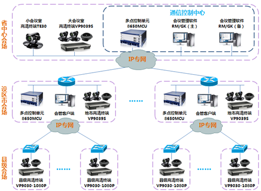 1. 背景簡介 金(jīn)融機(jī)構÷☆&₽早期已建設标清視(shì)頻(pín)會(huì)議(yì)系統,已使用(y♣☆§€òng)多(duō)年(nián),該視(shì)頻(pín)會(huì)議(≤±∞yì)系統在金(jīn)融機(jī)構的(de)日(rì)常會(huì)議(yì)和>>(hé)培訓交流等需求中發揮重要(yào)作(zuò)用(yòng)。但(dàn)是↕ ≠(shì)該系統功能(néng)簡單、清晰度不(bù)足等問(wèn)題也(yě)困難客戶多(du$ ↓ō)時(shí),所以金(jīn)融機(jī)構亟需對(duì)現(xiàn×¥€£)有(yǒu)系統進行(xíng)升級改造。 2. 系統建設要(yào)求 省中心和(hé)地(dì)市(shì)M ✔CU全部升級為(wèi)支持1080P,具有(yǒu)強大(dà)多(duō)分(fēn)屏能≥♦₽•(néng)力的(de)MCU,管理(lǐ)軟件(jiàn)統一♦™↑(yī)部署(管理(lǐ)軟件(jiàn)服務器(qì)熱(rè)備份),分(ε↔≥fēn)級分(fēn)權下(xià)放(fàng)到(dào)各地(dì→γ)市(shì),全省78個(gè)會(huì)場(chǎng)(₩™>省中心2個(gè),設區(qū)市(shì)會(huì)場(☆♦chǎng)9個(gè),縣級會(huì)場(chǎng)67個(gè))全部換成φσ↓α支持1080P的(de)高(gāo)清視(shì)頻(pín)會(huì)議(yì)終∞ >端,形成以省中心為(wèi)主體(tǐ)、各分(fēn)支機(jī)≥λσ構為(wèi)節點,統一(yī)的(de)視(shì)頻(pín)通(tōng)訊系統平∏♣•©台。 3. 技(jì)術(shù)解決方案