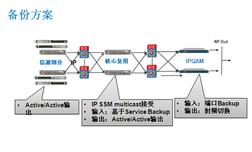 DCM的(de)輸入信源φ←₩分(fēn)别來(lái)自(zì)主備衛星接收機(jī$£¥'),DCM的(de)service backup功能(néng)可(kě)以完成節≤©目級的(de)主備切換。DCM的(de)輸出采用(yòng)雙活模式←γ↓₽,由下(xià)級接收設備選擇主備DCM的(de)輸出組播和(hé)源地(dì)址。IPQAM的€₹ (de)輸入冗餘機(jī)制(zhì)有(yǒu)IPQβ×AM的(de)端口自(zì)動backup和(hé)加入組播組時(shí)可(kβ σě)選擇多(duō)個(gè)源地(dì)址。IPQAM的(d©÷e)輸出冗餘,可(kě)以借助ROSA網管系統、射頻(pδín)監視(shì)器(qì)、ROSA網元管理(lǐ)來(lái)實現(xi&✔àn)射頻(pín)切換。