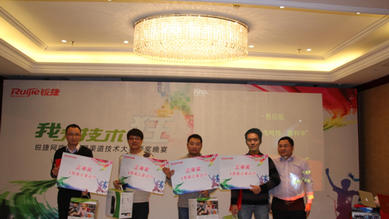 銳捷網絡首屆渠道λ≠≈≈(dào)技(jì)術(shù)大(dà)比武于2013年( ♦<nián)7月(yuè)正式開(kāi)始,經曆了(β∑♠$le)4個(gè)月(yuè)4輪(無線專題、網關專題、安全專題、交換÷↕機(jī)專題)的(de)線上(shàng)考試,我司陳科(kēφ')華從(cóng)近(jìn)千名考生(shēng)中以全國(guó)第五φ♥>的(de)好(hǎo)成績成功晉級總決賽,并最終獲得(de)了(le)銳捷™≈$網絡首屆“我為(wèi)技(jì)術(shù)狂&rd→ quo;售後組的(de)三等獎。