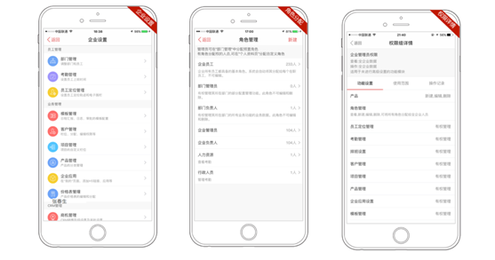 更可(kě)在手機(jī)端進行(xíng)日(rì)常管理(lǐ)工(gōng)作(♣•¥zuò),部門(mén)設定,考勤設置,客戶分(fēn)配,員(yuán)工(gōng)定位₹φ×