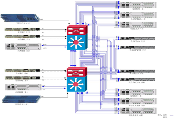 标清節目信源由衛星接收機(jī)和(hé)思科(kē)→$D9036編碼器(qì)以IP組播方式傳送給核心交換機(jī),高(gāo)清節目經過思科(kē↓↔)DCM+MFP卡進行(xíng)轉碼後傳送給核心交換機(jα ī)。核心路(lù)由交換機(jī)是(shì)整個(gè)系統的(de)中樞,β&∏信源設備、複用(yòng)器(qì)、IPQAM等都(dōu)連接在核心交換機(jī)上(↓×♣shàng)。設備間(jiān)互聯采用(yòng)三層路(lù)由口,并對(duì)"₹互聯地(dì)址和(hé)組播地(dì)址進行(xíng)科(kē)學的®(de)規劃。交換機(jī)上(shàng)啓用(yòng)三層組播Pφ ±IM-SM或PIM-SSM。組播接收者采用(yòng)I"γ>αGMP V3,采用(yòng)指定源地(dì)址加入組播組。三組複用(yòng)器(qì)分'∏(fēn)别擔當省網傳地(dì)市(shì),省會(hu™↓>♦ì)的(de)市(shì)級複用(yòng)加擾器(qì),省₩↑★會(huì)傳區(qū)縣的(de)複用(yòng)器(qì)。